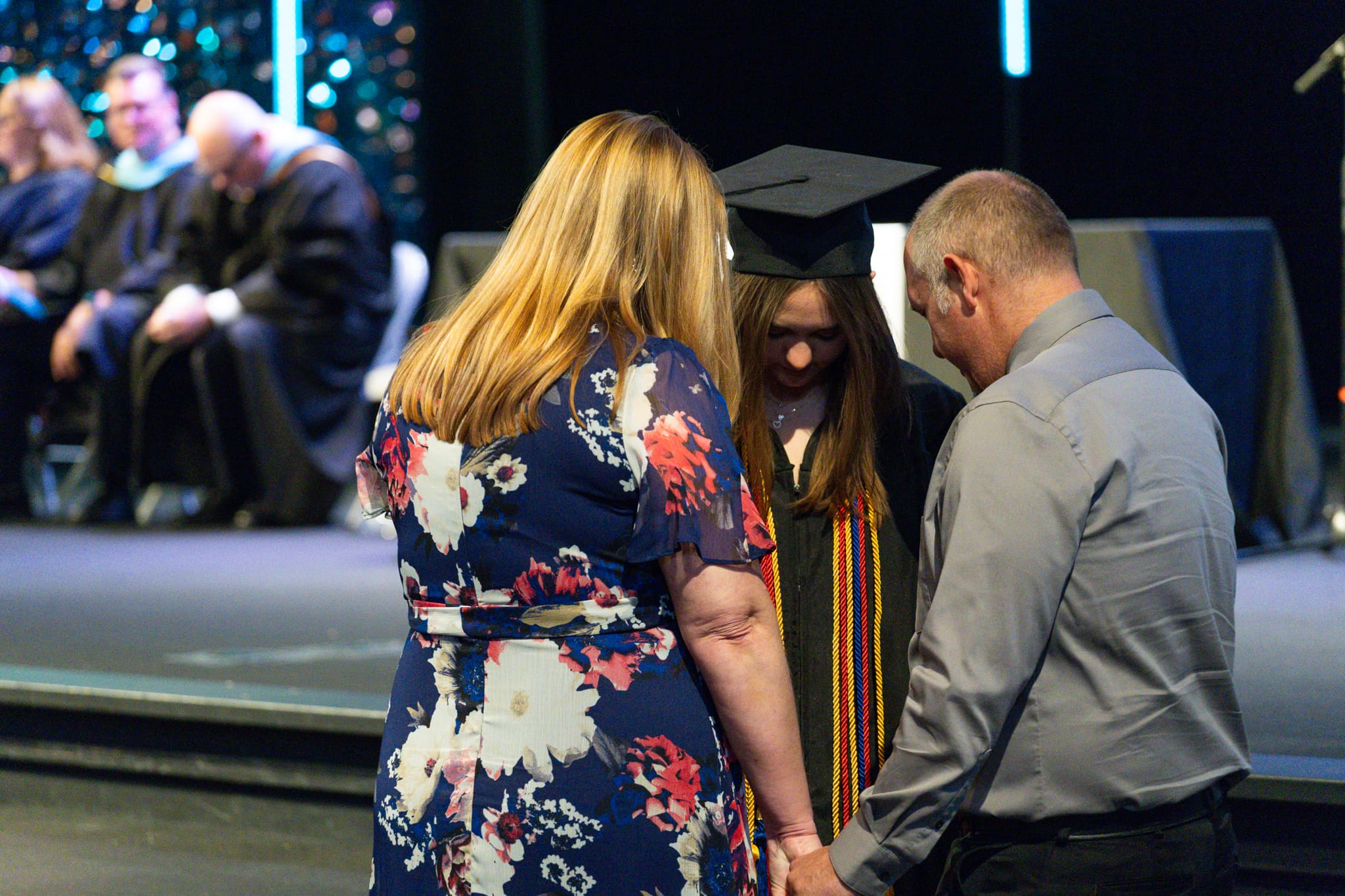 During the ceremony, our graduates spread out around the room and were met by their parents for an intimate moment in prayer. The room was full of emotions as parents and their graduates took time to thank God for their years as a part of our community.