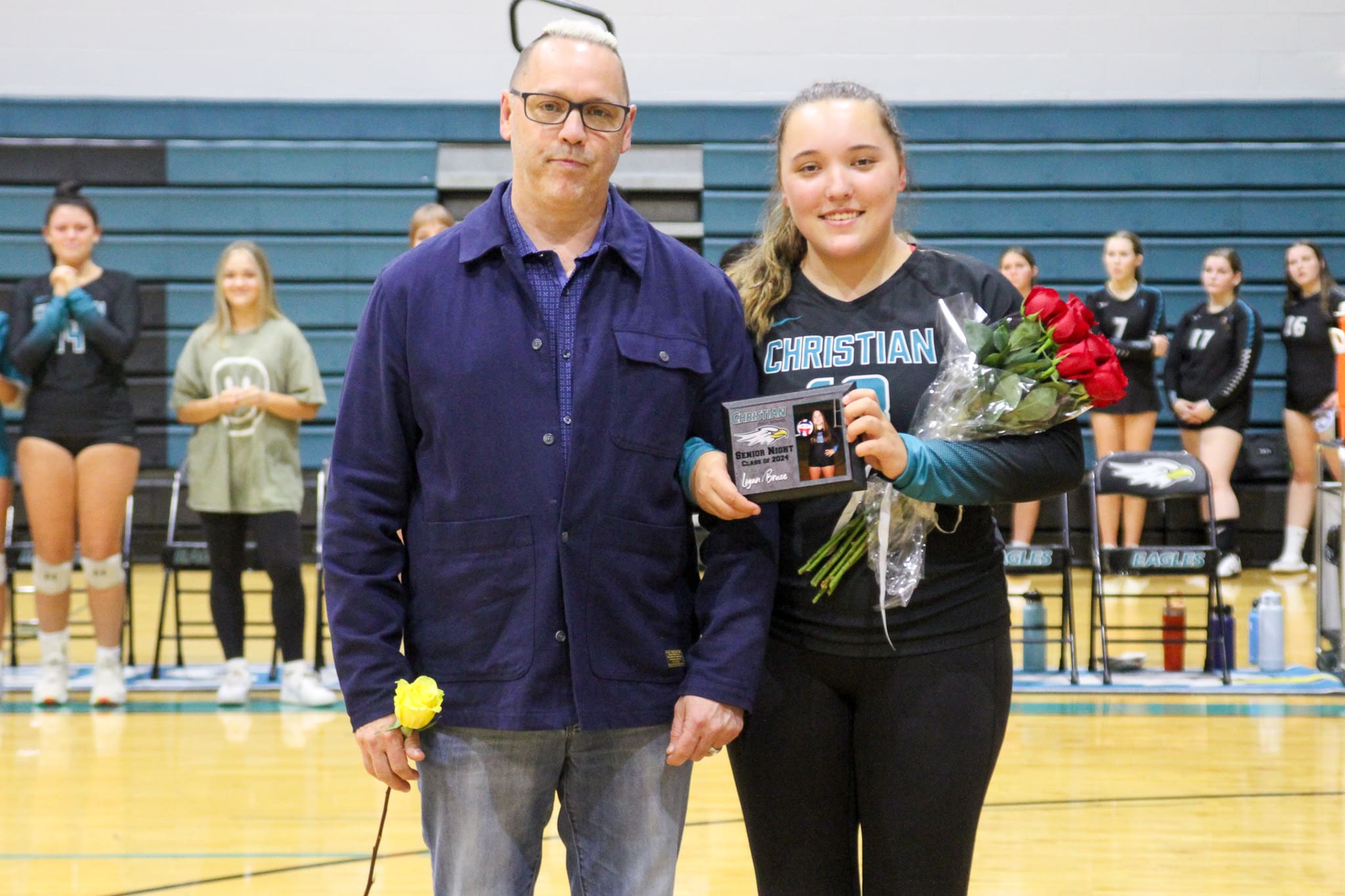 Logan Bruce (24′) is a four year member of our varsity volleyball team. Logan was also a freshman on our 2020 State Championship volleyball team. During that season, Logan received the Most Improved Player award and the Coaches Award. In addition to volleyball, Logan also participated in SGO, Pep Club, Yearbook, and National Honor Society. She plans to major in marketing at Missouri Baptist.